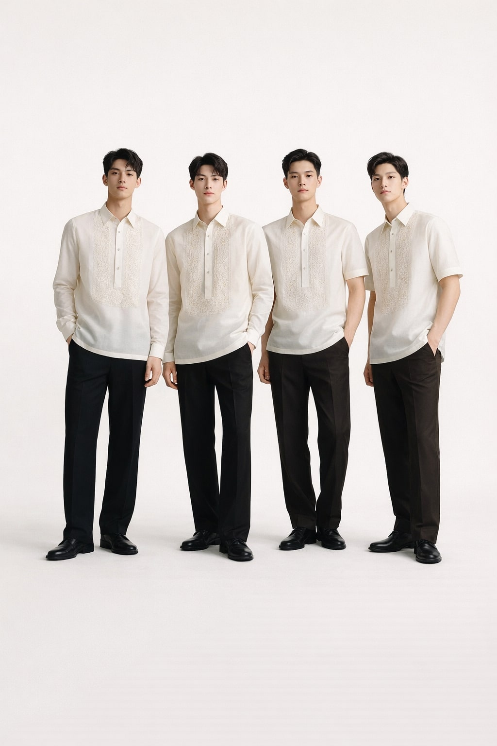 Skip jeans/maong pants, colored undershirts, and rubber shoes.